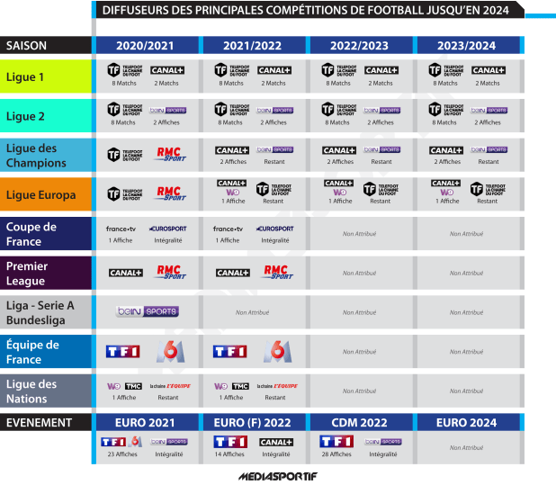 Infographie Ou Voir Le Football A La Television Jusqu En 2024 Mediasportif